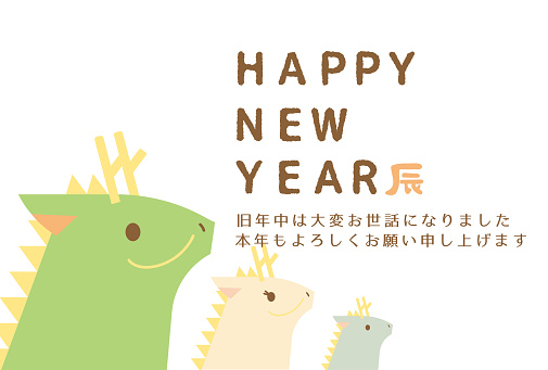 Simple Dragon New Years Card 2024 Family Written In Japanese Happy